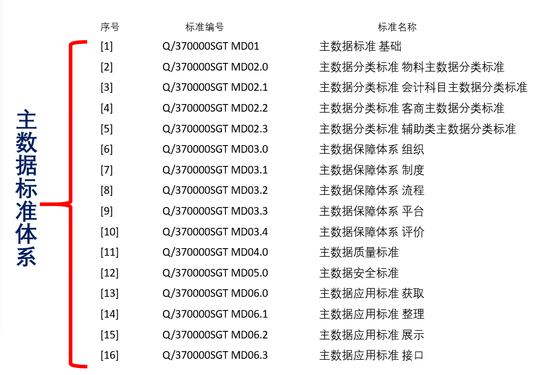 主数据平台以钢铁行业主数据为研究对象,打造钢铁主数据标准体系,包括六大主题域十三类主数据,主要从组织、人员、供应商、客户、设备管理、产品、中间产品、原辅料、能源、副产品、计量单位、系统标识主数据及涉及的信息系统等类型建立主数据体系,标准体系包括主数据标准基础、主数据分类标准、主数据保障体系 、主数据质量标准、主数据安全标准、主数据应用标准等。
